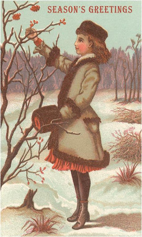 MC-326 Season's Greetings, Victorian Girl with Muff - Vintage Image