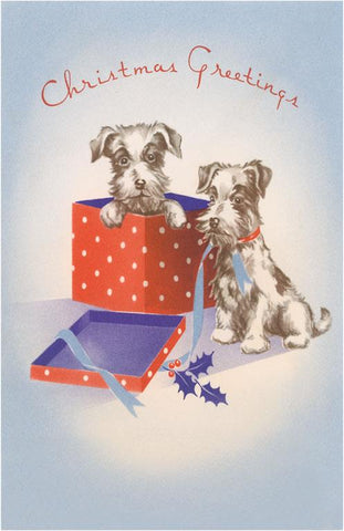 MC-396 Christmas Greetings, Terrier Puppies - Vintage Image
