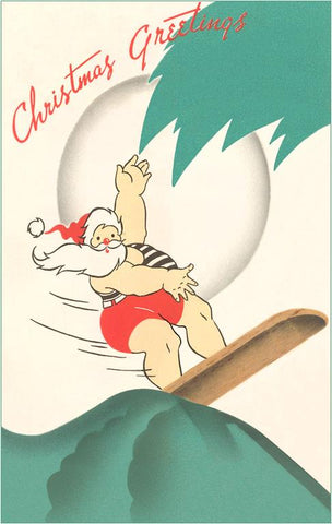 MC-398 Christmas Greetings, Santa Surfing - Vintage Image