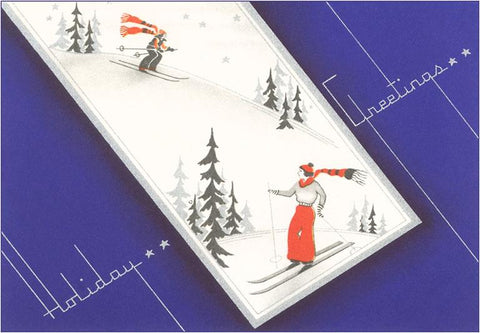 MC-405 Holiday Greetings, Skiers - Vintage Image