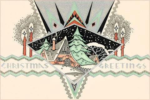 MC-437 Christmas Greetings House and Tree - Vintage Image
