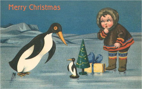 MC-531 Eskimo Boy and Penguin with Toys - Vintage Image