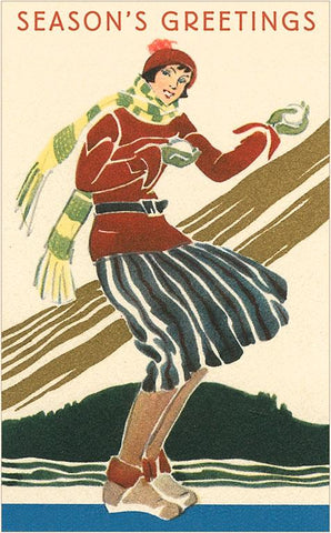 MC-532 Woman Throwing Snowballs - Vintage Image