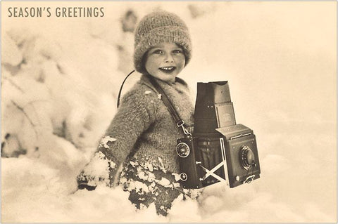 MC-552 Season's Greetings, Child with Camera - Vintage Image