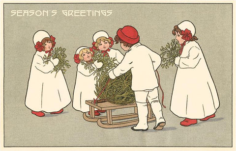 MC-567 Children Putting Tree on Sled - Vintage Image