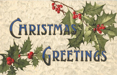 MC-681 Christmas Greetings, Holly - Vintage Image