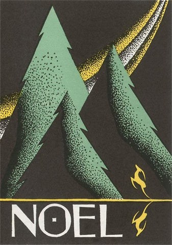 MC-844 Noel, Stylized Trees and Stags - Vintage Image