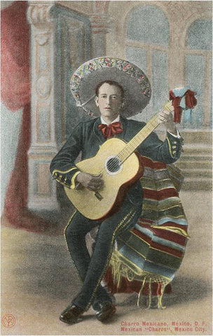 MX-89 Charro Playing Guitar, Mexico - Vintage Image