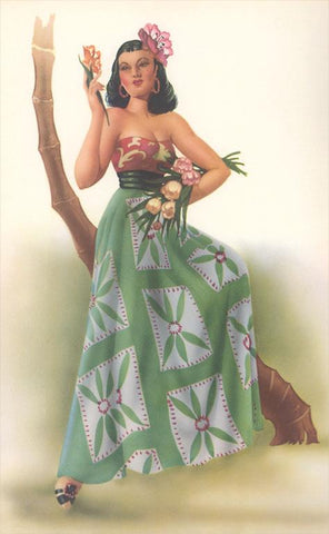 MX-327 Mexican Senorita Holding Flowers - Vintage Image