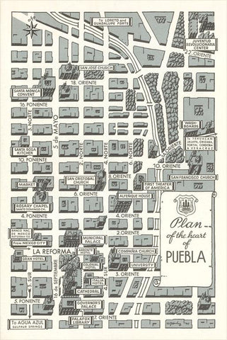 MX-490 Plan of the Heart of Puebla - Vintage Image