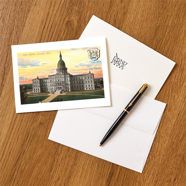 Uncover the rich history and scenic beauty of Michigan with Found Image Press's exclusive wholesale collection. Our vintage postcards, greeting cards, desktop calendars, art prints, stickers, and magnets capture the essence of the Great Lakes State. Perfect for retailers looking to enhance their inventory with unique and nostalgic items, each product is crafted from high-quality materials for lasting appeal. Discover a curated selection that highlights the heritage and beauty of Michigan.