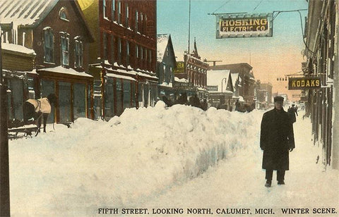 MI-27 Fifth Street in Winter, Calumet - Vintage Image