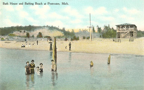 MI-67 Bath House, Beach, Pentwater - Vintage Image