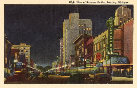 MI-216 Night, Business District, Lansing - Vintage Image