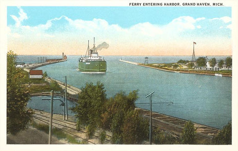 MI-239 Ferry Entering Harbor, Grand Haven - Vintage Image