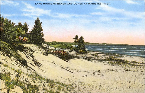MI-320 Beach and Dunes, Manistee - Vintage Image