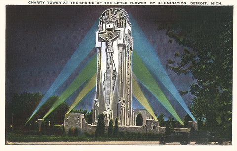 MI-329 Night, Shrine of the Little Flower, Detroit - Vintage Image