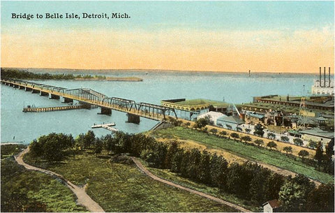 MI-373 Bridge to Belle Isle, - Vintage Image