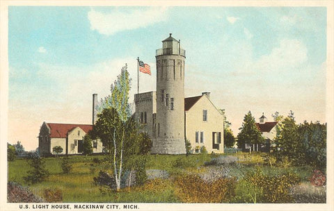 MI-456 Lighthouse, Mackinaw City - Vintage Image