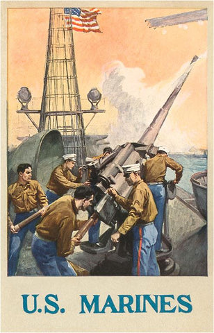 ML-08 US Marines, Firing Anti-Aircraft Guns - Vintage Image