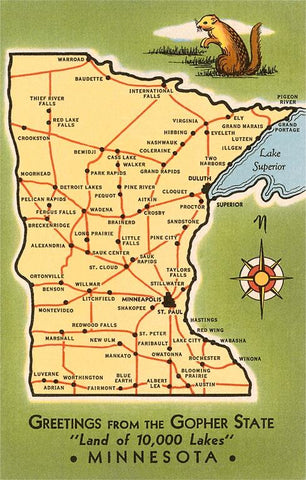 MN-129 Map of Minnesota - Vintage Image