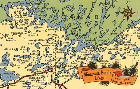 MN-167 Map of Minnesota Border Lakes - Vintage Image