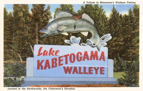 MN-174 Sign for Lake Kabetogama, Walleye - Vintage Image