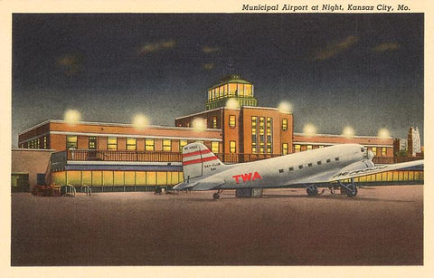 MO-187 Night, Municipal Airport, Kansas City - Vintage Image