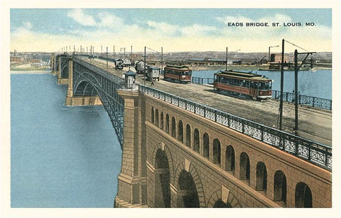 MO-203 Eads Bridge, Streetcars, St. Louis - Vintage Image