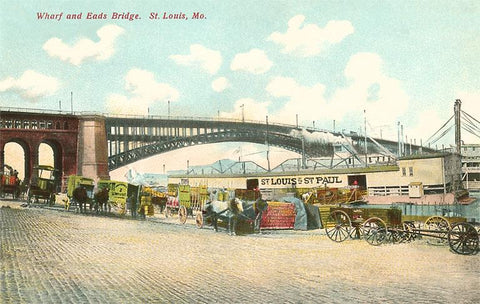 MO-204 Wharf and Eads Bridge, St. Louis - Vintage Image
