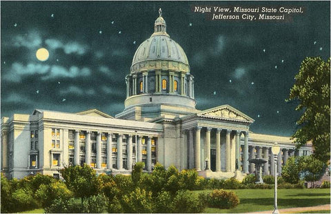 MO-241 Night, State Capitol, Jefferson City - Vintage Image