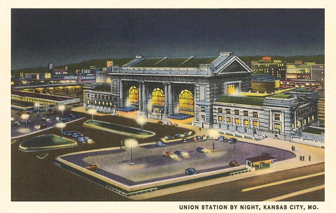 MO-364 Union Station at Night, Kansas City, MO - Vintage Image