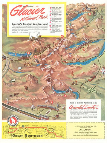 MT-351 Map of Glacier National Park, Montana - Vintage Image