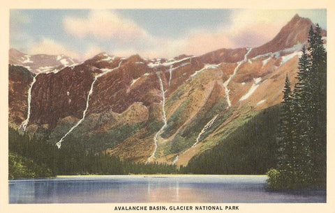 MT-38 Avalanche Basin, Glacier Park, Montana - Vintage Image