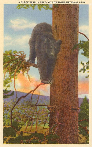 MT-66 Bear in Tree, Yellowstone Park, Montana - Vintage Image