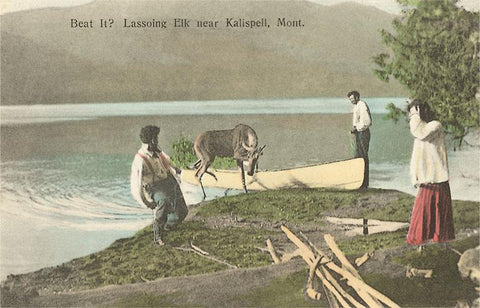 MT-111 Lassoing Elk near Kalispell, Montana - Vintage Image