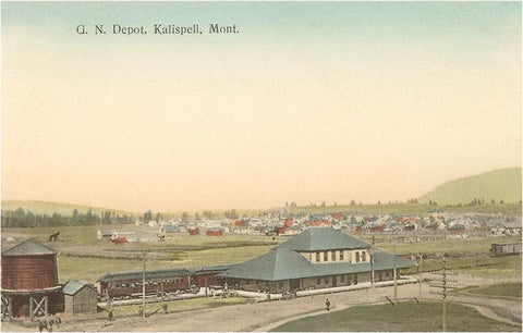 MT-183 Train Depot, Kalispell, Montana - Vintage Image