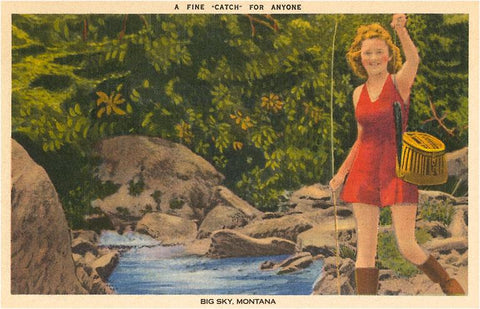 MT-262 Woman Fishing, Big Sky, Montana - Vintage Image