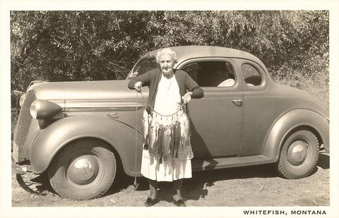MT-272 Old Woman with Fish, Whitefish, Montana - Vintage Image