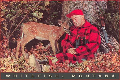 MT-277 Sleeping Hunter with Fawn, Whitefish, Montana - Vintage Image