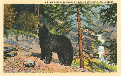 MT-292 Black Bear, Glacier Park, Montana - Vintage Image