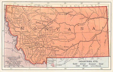 MT-345 Map of Montana - Vintage Image