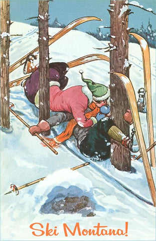 MT-347 Skiers Crashed into Tree, Montana - Vintage Image