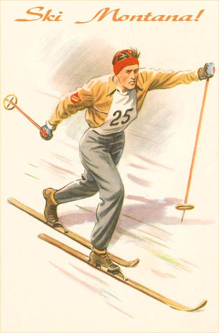 MT-348 Ski Montana, Vintage Cross Country Skier - Vintage Image