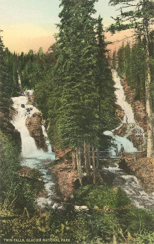 MT-394 Twin Falls, Glacier National Park - Vintage Image