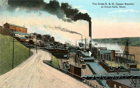 MT-437 Great B & M Copper Smelter, Great Falls, MT - Vintage Image