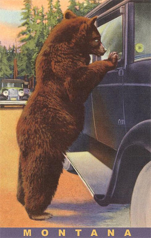 MT-471 Bear at Tourist's Car Window - Vintage Image