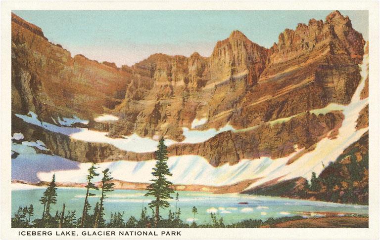 MT-58 Iceberg Lake, Glacier Park, Montana - Vintage Image
