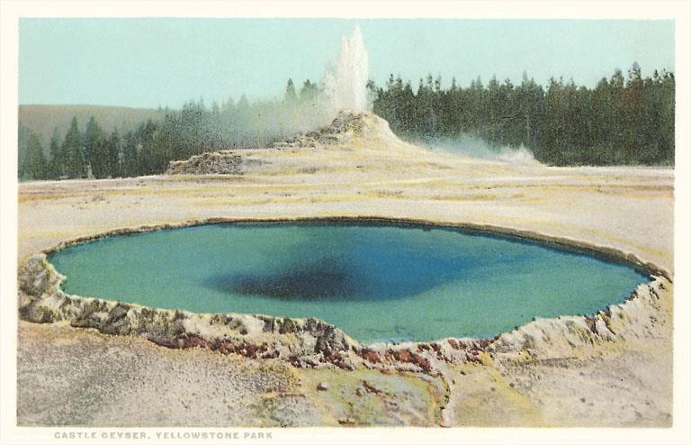 MT-73 Castle Geyser, Yellowstone Park, Montana - Vintage Image