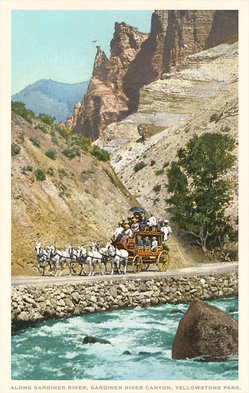 MT-87 Horse-Drawn Carriage, Yellowstone Park, Montana - Vintage Image
